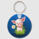 Llavero Pequeño cerdo rosado con hierba verde sobre azul
