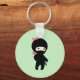 La personalizado guapa ninja chica está vestida de negro pero con un arco rosado encima de su máscara de cabeza. La tradicional espada japonesa katana se puede ver atada sobre su hombro, su mango también color rosa.