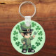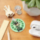 Este bonito diseño del Día de San Patricio presenta un pequeño leprechaun vestido de verde con un fondo de rocas de champú en círculo.
