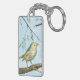 Llavero Pequeño pájaro amarillo encaramado en una rama mir