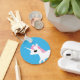 Un llavero con un adorable ilustracion vectorial de un unicornio blanco con una forma rosada en un fondo azul.