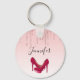 Un keychain moderno y de moda. El fondo tiene una imagen de goteo de purpurina rosa brillante, en la parte superior. El resto del fondo es un delicado degradado de color rosa pastel. Un par de tacones rosados le dan un toque de diseño.