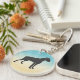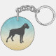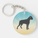 Silueta de perro boxer sobre un fondo de sol radiante azul y amarillo.