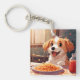 Un perro blanco esponjoso, aderezado con manchas marrones, se sumerge primero en una montaña de espaguetis. La salsa de tomate se esparce a través de su piel y el mantel blanco en un delicioso desorden. El ilustracion, representado en una composición impresionante y magistralmente equilibrada (¡piénsese en la proporción dorada!), evoca lo detallado, aunque caprichoso