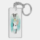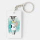 Un perro hipster que lleva una bolsa de huesos sobre un marco acuático abstracto hace una buena cadena de claves para los amantes del perro, los mascotas, el veterinario y más.