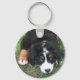 Foto de un perro de montaña de Bernese tendido en el pasto. Puede agregar texto.