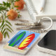 El llavero perfecto para una persona que practica surf con el diseño fresco de dos tablas hawaianas brillantemente coloreadas que se colocan en una playa. Estas tablas hawaianas son estilo clásico y evocadoras retros de un verano brillante, día soleado en la playa. Un gran diseño para los amantes de la playa y de practicar surf.