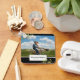 Diseñado en base a mi ilustracion floral acuarela hojas de laurel verde brillante. El diseño tiene un patrón de damasco negro y gris en el fondo. Personalizar con tu propia fotografía y textos para un diseño personalizado.