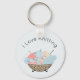 La cadena de teclas divertidas incluye el ilustracion del intestino con manchas y bolas de hilo y personalizable curvo "Me encanta tejer" texto superior