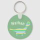 Dinosaurio personalizado de rayas verdes y azules en la cadena personalizada de botones del lindo niño.