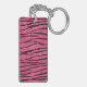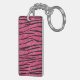 Llavero Personalización nombre fuchsia raya rosa purpurina