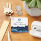 Elegante ágata azul marino y oro decora el lado de este moderno partido Bar Mitzvah que favorece la cadena de llaves. El nombre de su hijo está escrito en un hermoso guión formal bajo la Estrella de David. Perfecto para una moda, elegante familia judía celebrando la llamada de su hijo a la Torá.