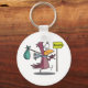 Un pájaro al estilo personalizado con un saco y parado junto a un cartel que se dirige al sur. Este diseño parece realmente efectivo en esta cadena de claves