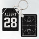 Celebra el juego con estilo con este keychain personalizado de baloncesto en blanco y negro. Con un diseño de cancha de baloncesto monocromo y detalles personalizados de camiseta, es un accesorio destacado para jugadores, fans o entrenadores. Añade tu nombre, número o equipo para crear un conservador significativo o un regalo reflexivo.