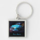 Añada su propio nombre o negocio a este llavero superior impresionante. Un camión azul viejo hermoso del vintage del antaño, cubierto hacia fuera en cromo y sistema brillantes que centellean en un fondo negro del espacio. Destacado por las estrellas y los remolinos y otros fenómenos del espacio, es algo un poco diferente para la piel de ante del coche.