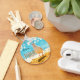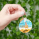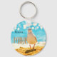 Cadena de claves personalizada con una gaviota. Una divertida cadena de llaves con una gaviota sobre un fondo de playa. Su nombre se puede agregar para personalizar la etiqueta o dejarla en blanco si lo desea. Un gran accesorio de vacaciones.