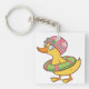 Un alegre y colorido llavero acrílico con un alegre pato amarillo con una gorra rosa de nado floral, gafas verdes y un tubo interior a rayas. El pato de ojos anchos y sorprendidos hace que este llavero sea adorable para los niños, perfecto como regalo, recompensa o accesorio divertido para mochilas y bolsos escolares. Los colores brillantes de caricatura y las líneas audaces aseguran que el pato se destaque y traiga alegría a los niños.