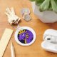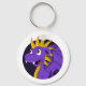 Keychain con ilustracion de diseño de chica de dragón lindo morado y amarillo / cuento de hadas para niños en círculo negro , diseño para niños de Maxi Harmony,