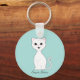 Llavero Personalizado de gatito blanco lindo en azul claro