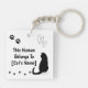 Lleva tu amor por tu gato a todas partes con este adorable llavero personalizado. Con un lindo gato negro, huellas de patas, corazones y texto personalizable, este diseño dice con orgullo:
