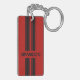 Diseño de patrones de rayas de autos de doble carrera negro en un fondo rojo oscuro. Personalizar con el nombre, el monograma, las iniciales o el (limitado) texto de su elección. Diseñado para el elegante deporte de autos de carreras, Nascar, Indy 500, Le Mans o el fan de las carreras de Fórmula 1 Grand Prix, el amante o propietario de coches clásicos, coches musculares, barras calientes, espectáculos de coches