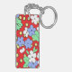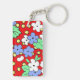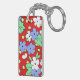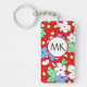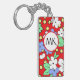 Esta tierna cadena floral de dibujos a mano tiene un monograma que se puede personalizar con tus iniciales, o una sola letra. El dibujo está inspirado en un patrón floral de saco de pienso vintage y tiene flores y hojas pequeñas en un fondo rojo. Perfecto como accesorio de verano.