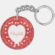 Esta cadena de claves presenta un fondo de caja purpurina de coral con un centro cardíaco blanco rodeado de puntos y un monograma de nombre y letra inicial. Personalice los campos de texto con un nombre o apellido e inicial, quite uno o ambos textos o haga clic en personalizar para seleccionar un estilo de tipo de letra, tamaño y color que prefiera. El cambio de texto se producirá en ambos lados.
