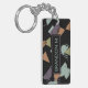 Cadena de teclas rectangular duradero con tríángulos geométricos abstractos de color violeta, verde, gris y marrón naranja, puntos de polka y diseño de patrones de mosaico de medio círculo sobre un fondo negro. Con espacio para personalizar o personalización con el nombre que elija. Elegante, moderno y fresco estilo personalizable para el hombre de moda. Para adjuntar a su maletín o cremallera de mochila, para recibir recompensas de lealtad o tarjetas de membresía, o por supuesto... para guardar las llaves! Cualesquiera que sean las claves que quiera mantener en su lugar y mantener juntas, un anillo de claves personalizado único hará que parezca más agradable y también más fácil de reconocer como su propio juego. Haga clic en el nombre de nuestra tienda para ver los titulares de claves más únicos con otros diseños personalizados.
