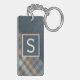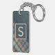 Funda tartán contemporánea marrón, beige, taupe y azul verde azulado oscuro, con un fondo de textura de piel falsa. Con espacio para personalizar o personalización con un nombre monograma o inicial de su elección. Hermosa, moderna y fresca etiqueta o maleta para el trendsetter de moda y amante de las caderas, amante de los artsy motif.