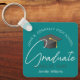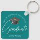 Este moderno personalizado verde azulado de nivel superior presenta su nombre de instituto o universidad para la clase de 2025. Personalizar con tu año de graduación bajo la moda manuscrita y tapa gris grad para un gran regalo personalizado de la cadena de claves de graduación.