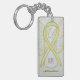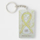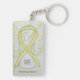 La cadena de teclas del ángel de la guarda muestra el arte de una pintura de ángel de cinta amarilla de la conciencia. La cadena de claves tiene la palabra "ESPERANZA" y el espacio inferior para el personalizar con su propio nombre de causa personal. La palabra "ESPERANZA" también podría sustituirse por "CURE". La cadena de teclas de arte de la cinta de ángel de la conciencia amarilla se puede personalizar con mensajes personalizados para hacer grandes cadenas de claves de causa para recaudadores de fondos, regalos de concientización u otros eventos o ocasiones especiales.