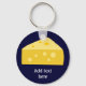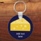 Añade un lema o nombre para crear un regalo personalizado con un tema de queso. La imagen muestra una gran cuña de queso suizo con agujeros.