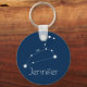 Personalized Leo Zodiac Constellation Keychain. Featuring Leo’s Constellation on a Navy Background, this Personalized Leo Zodiac Constellation Keychain Makes a Perfect Birthday Gift for any Leo. Background Color and Text can be Customized
