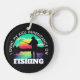 Este colorido diseño retro de los años 80 muestra a un hombre pescando sobre un fondo escénico. Las palabras dicen: "Gasté la herencia de mis hijos en pescar".