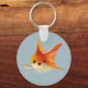 Llavero de pez dorado pequeño. Un solo pez dorado sobre fondo azul.