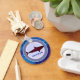 Un tiburón gráfico rojo dentro de un círculo azul - se puede personalizar cambiando la palabra "tiburón"