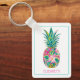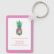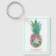 Este llavero personalizado preppy presenta una piña floral tropical rosa y verde linda. Personaliza con tu elección de nombre o texto especial en el frente y la parte posterior.