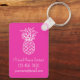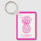 Esta linda cadena de teclas personalizada presenta una piña rosa brillante en blanco en la parte delantera y una piña blanca en rosa en la parte posterior. Personaliza cada lado con tu elección de nombre y texto especial.