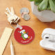 Un pequeño pingüino personalizado con sombrero de santa y bufanda verde caminando sobre la nieve. Color de fondo personalizado. Texto personalizado en ambos lados.