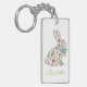 This Easter holiday keychain features an adorable spring rabbit of pink and blue wildflowers and leaves. Personalize the front with your choice of name and the matching green back with your choice of special text.
