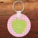 A gift for teachers featuring an illustration of a green apple over a pink gingham background. Personalize with your name.