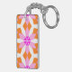 Vibrant pink purple and orange retro abstract geometric floral pattern featuring flower petal-like shapes.