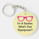 Pink spectacles funny teacher keychain gift. Humorous slogan: I'm a teacher what's your superpower? Customize text and colors. Funny quote for kindergarten, elementary, grammar school teachers and kids coaches. Educational favor for 1st 2nd 3rd 4th 5th 6th grade teachers.