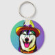 Llavero Pintura de arte pop de un perro Husky llevando un