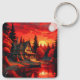 Llavero Pintura de atardecer con cabaña y lago-66633