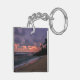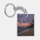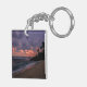La luz del sol que se desvanece crea bonitos tonos rosa y naranja en el cielo, haciendo las siluetas de las palmeras y resaltando el suave surf. Tranquila escena de playa.