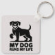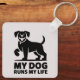 Llavero Playful Dog Outline "My Dog Runs My Life" Art