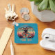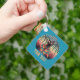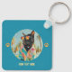 Cadena de llaves Tropical Cat Attitude Square: Un gato negro con gafas de sol de gran tamaño y una camisa hawaiana golpean una posición fría contra una puesta de sol tropical.