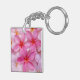 Keychain acrílico con una foto impresa de flores plumerias tropicales de bonito ubicadas en las islas hawaianas.