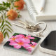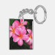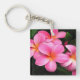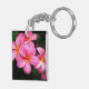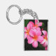 Keychain acrílico con una foto impresa de flores plumerias tropicales de bonito ubicadas en las islas hawaianas.